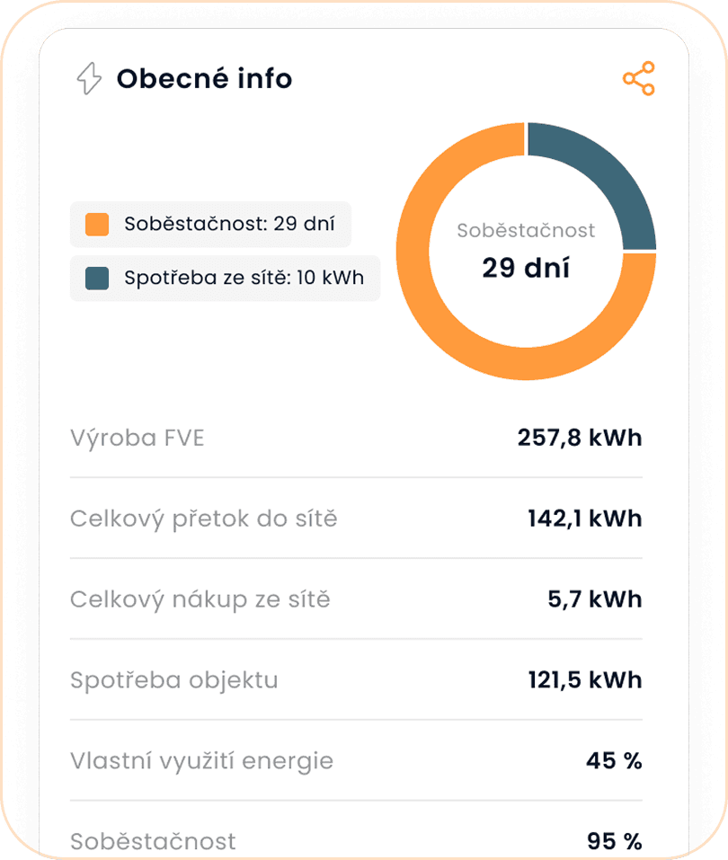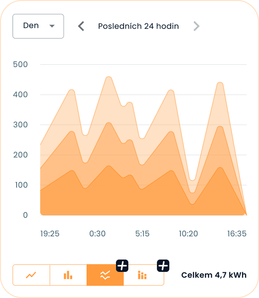 Automatické řízení spravuje energii tak, abyste co nejvíce ušetřili. Vše můžete sledovat online v aplikaci.